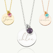 Joias elegantes com gravação personalizada e pedra que representa o mês de nascimento. Sofisticação com significado.