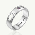 Anel Personalizado Pé de Bebê Com Pedra Do Mês E Nome